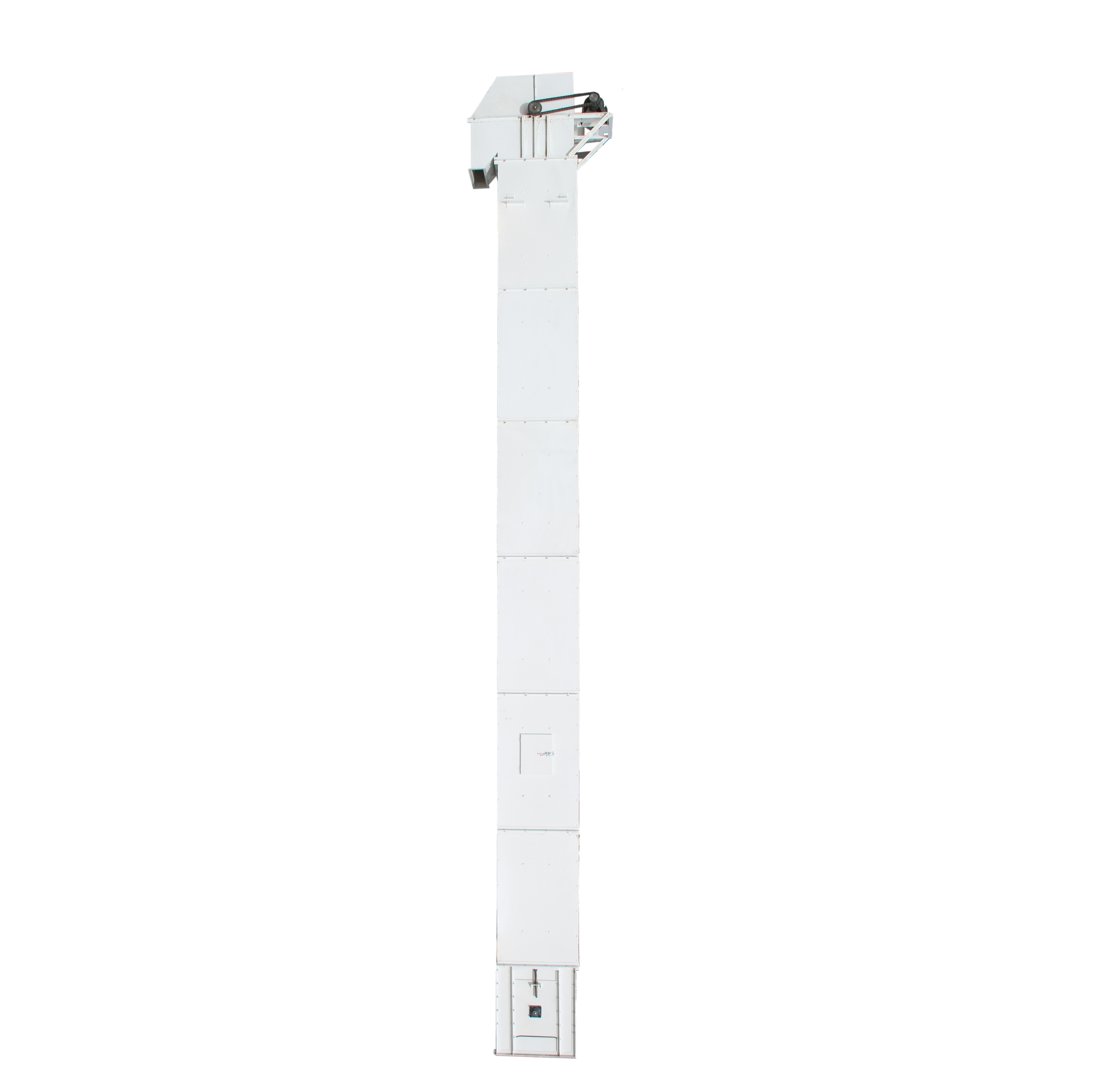 立式提升機是垂直提升物料的有效設備之一。本機適用于谷物、種子、肥料等顆粒狀物料的提升。立式提升機由皮帶和多組參斗組成,設備頂部和底部裝有輥輪。參斗經(jīng)皮帶轉(zhuǎn)動通過入料口時,物料由于重力作用自動流入畚斗內(nèi);當參斗經(jīng)皮帶轉(zhuǎn)動到達設備頂部,物料再由重力作用流向出料口;該機結構靈活,無論是機身高度、畚斗寬度、設備材質(zhì)都可滿足不同客戶的定制需求,該設備加裝了電機防雨罩、鏈條防護罩以及檢修平臺,很大限度的保障了設備的耐使用性以及易維護性。本設備可加裝上料平臺成地坑料箱,在保證較大化物料提升量的同時,也保證了較小的物料破損率。